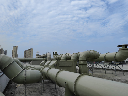 科學實驗室設計有機廢氣治理 → 活性酶炭脫水器 → 引軸流式風機 → 排放標準
